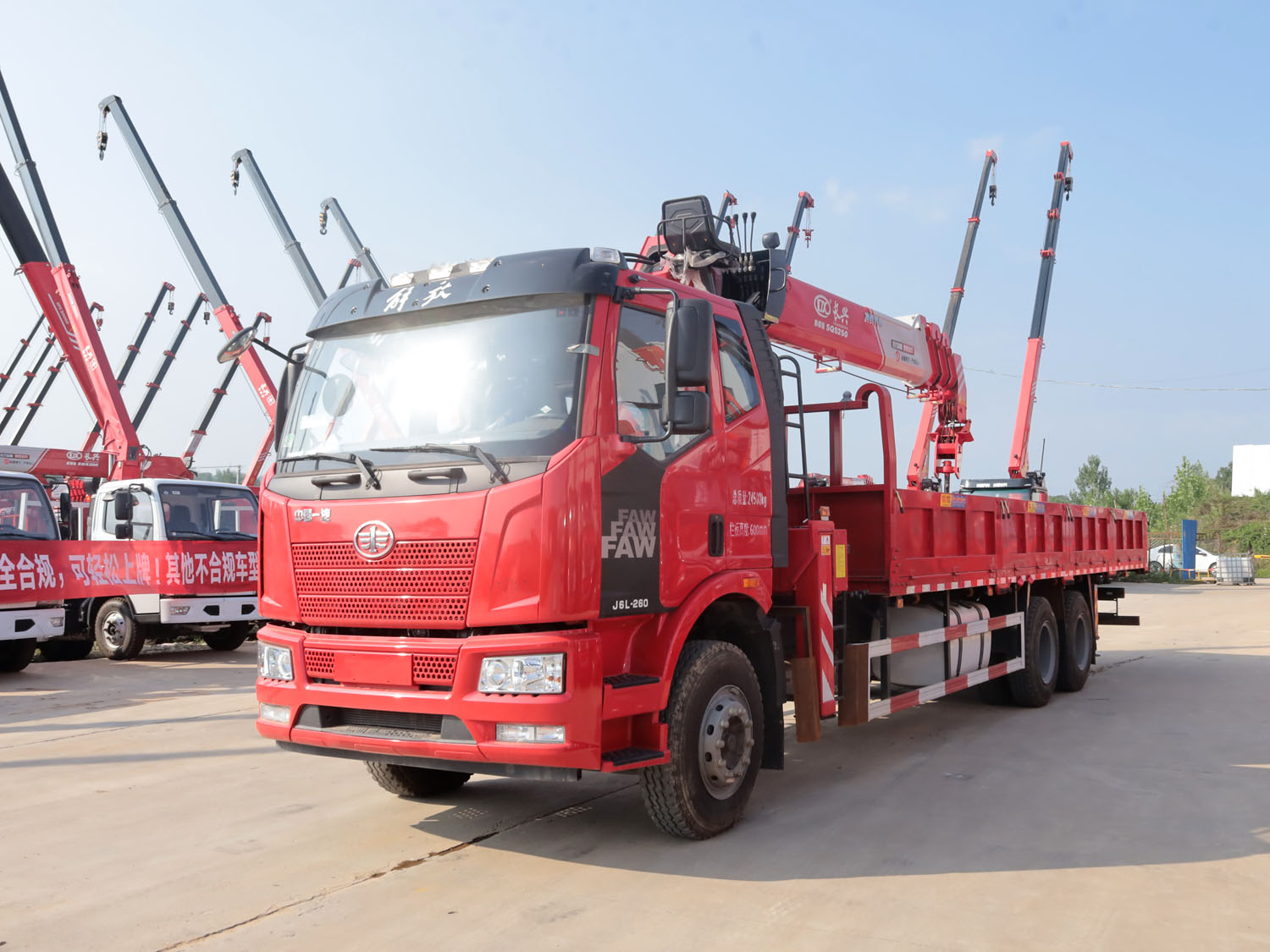 解放J6L后雙橋上裝長(zhǎng)興質(zhì)尊版10噸直臂式吊機(jī)