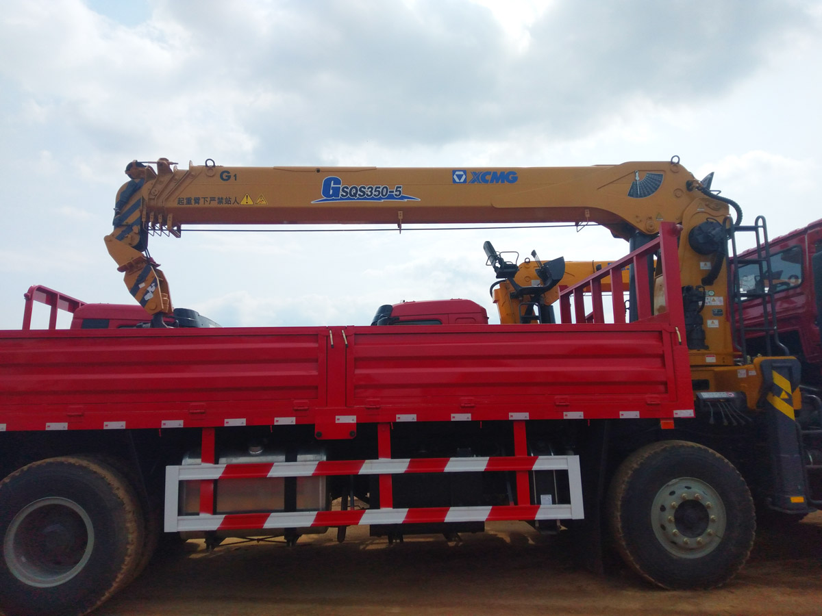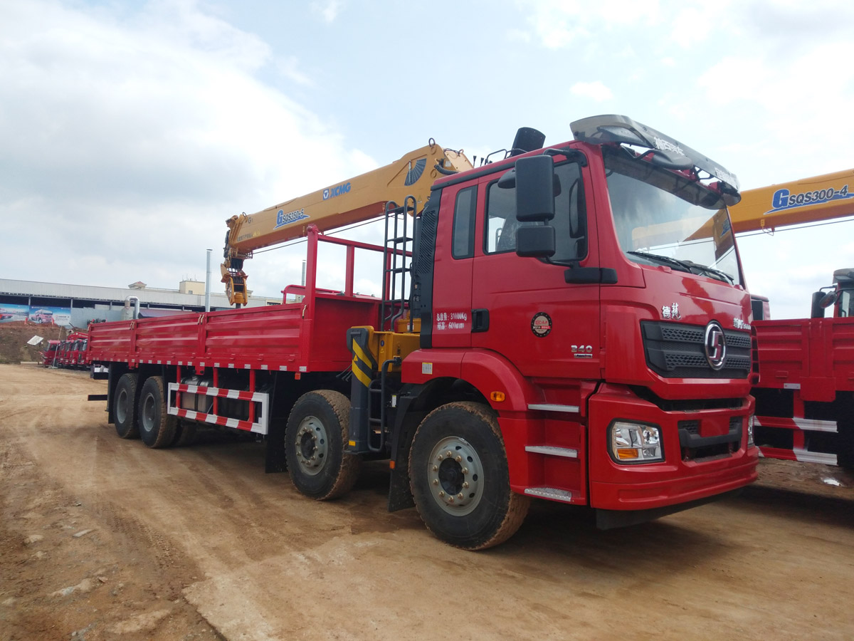 • 陜汽德龍新M3000駕駛室前四后八上裝徐工14噸直臂式吊機