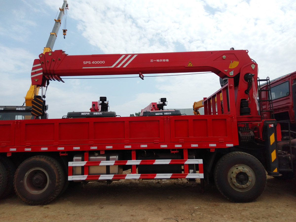 • 陜汽德龍新M3000駕駛室前四后八上裝三一16噸直臂式吊機