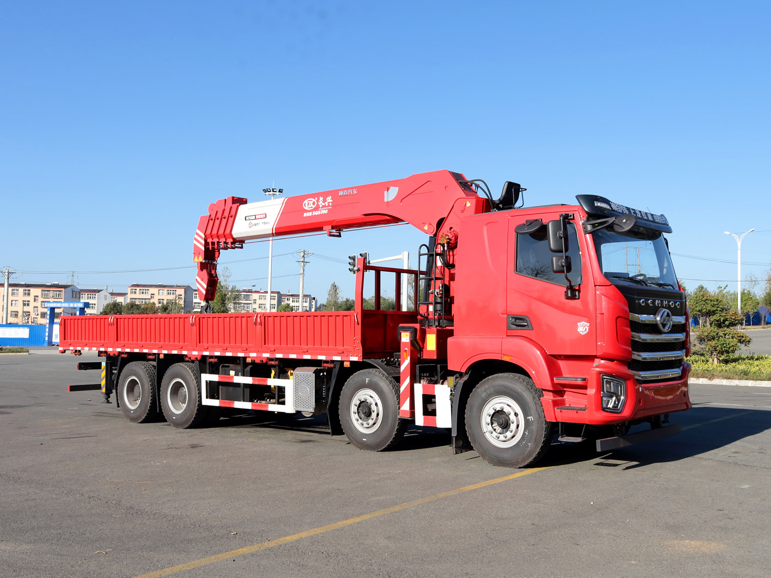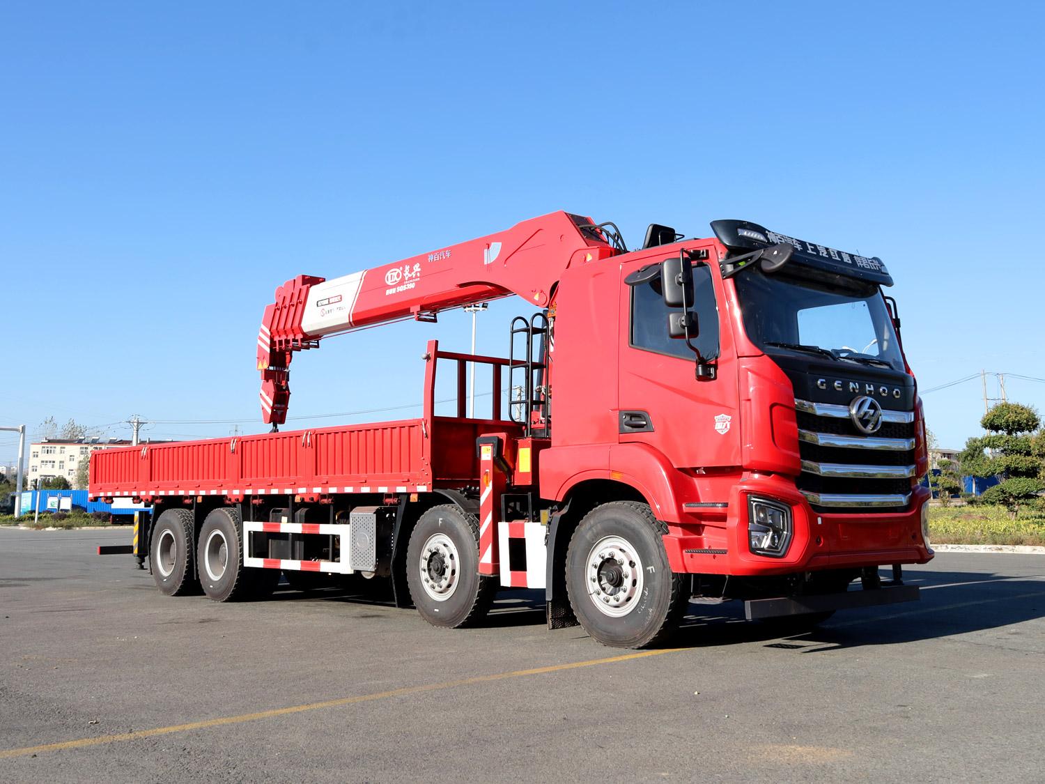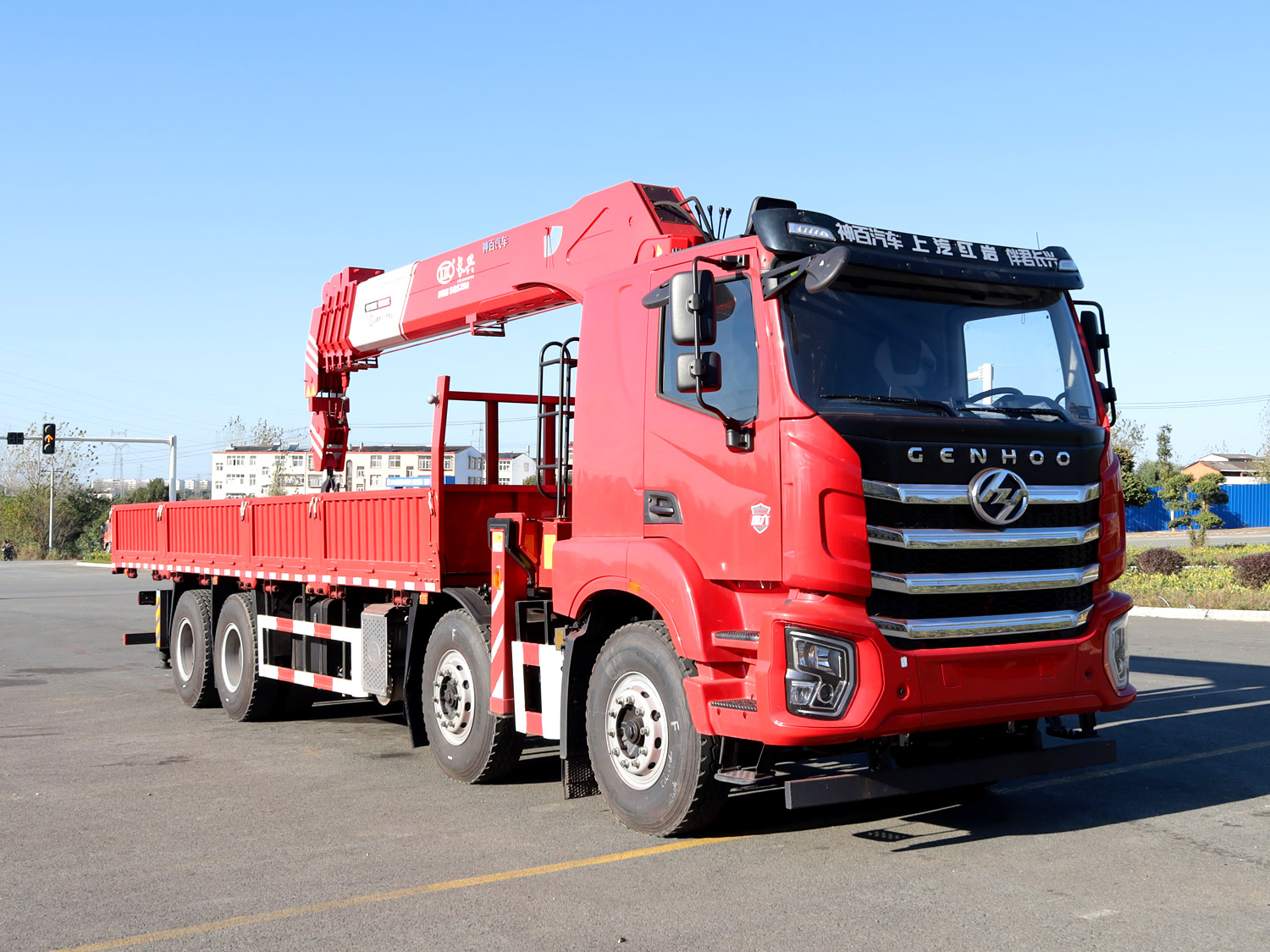 • 上汽紅巖杰虎H6前四后八上裝長興14噸直臂式吊機